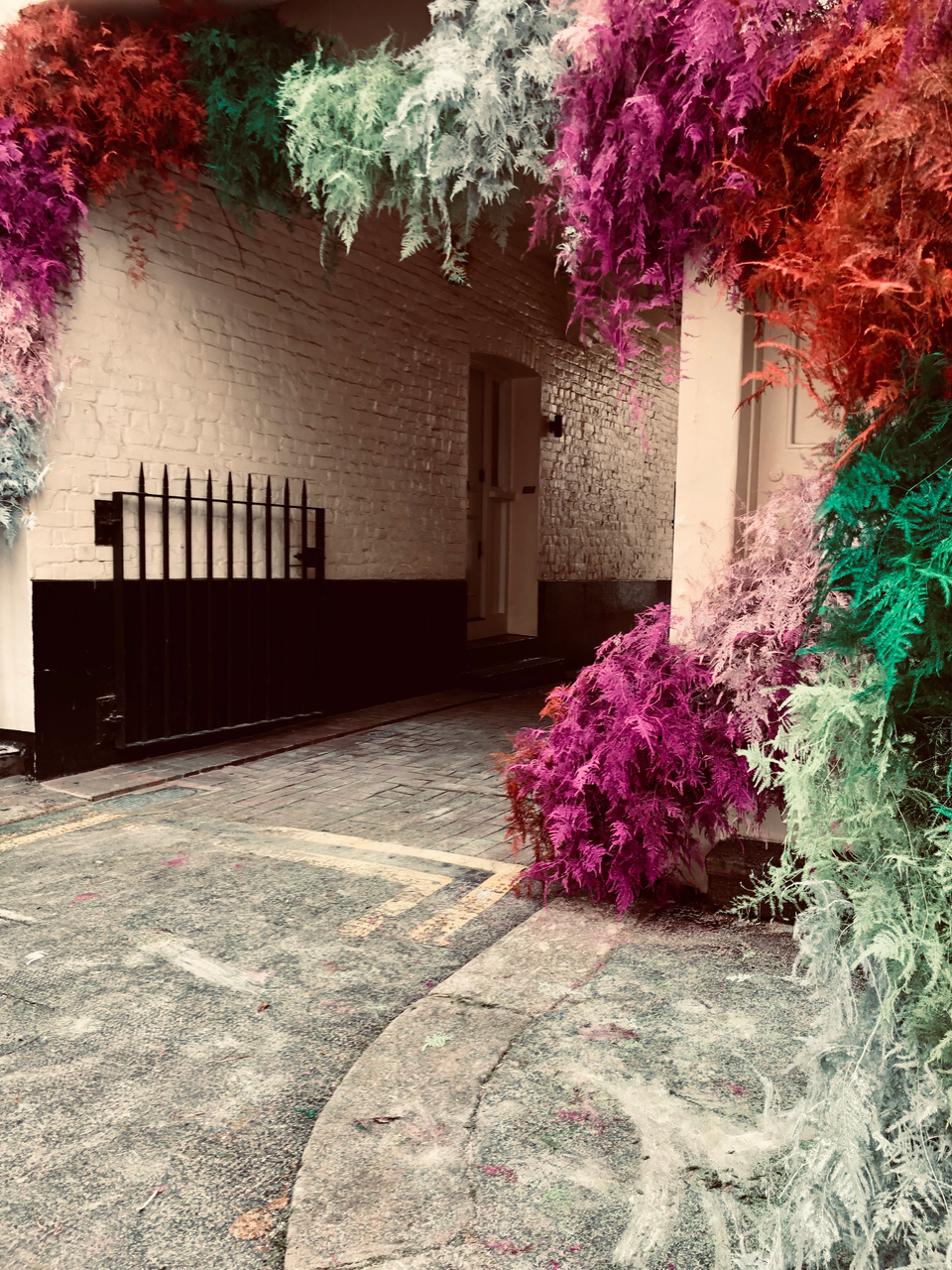 Colour blocking and texture for a candy floss inspired installation for "Belgravia in Bloom" | London.